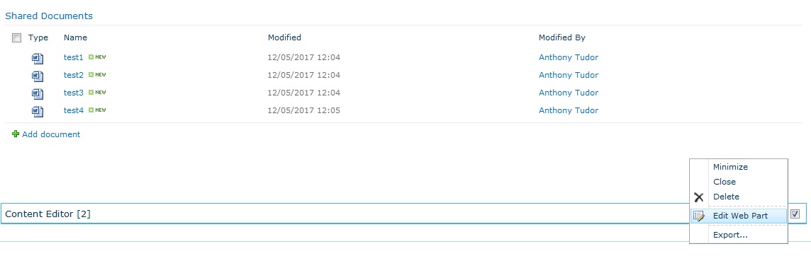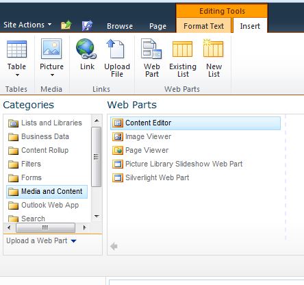 2. Add a content editor webpart to the page; I added it to the bottom of the page but you can add it whenever suites