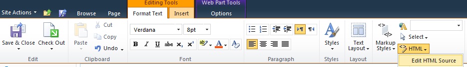 5. In the ribbon – Editing Tools menu – Format Text tab – Press HTML – Edit HTML Source