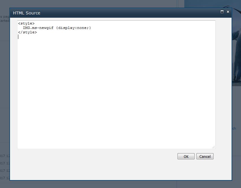 That is all there is to it, we have successfully removed the NEW! icons so they are no longer visible and also hidden the webpart which contains the tiny snippet of CSS that makes the change.